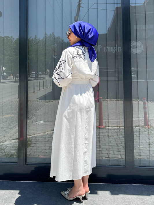 BEYAZ ÇİÇEK İŞLEMELİ ELBİSE