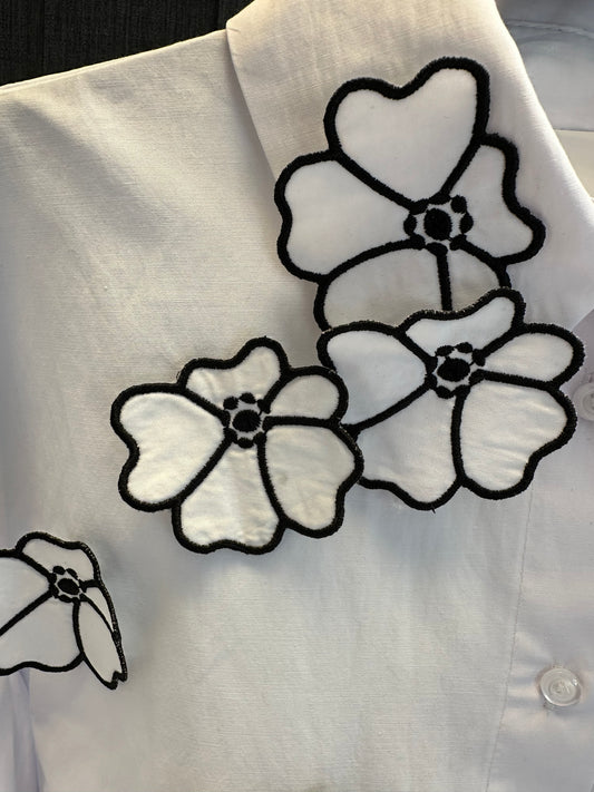 BEYAZ ÇİÇEK İŞLEMELİ GÖMLEK