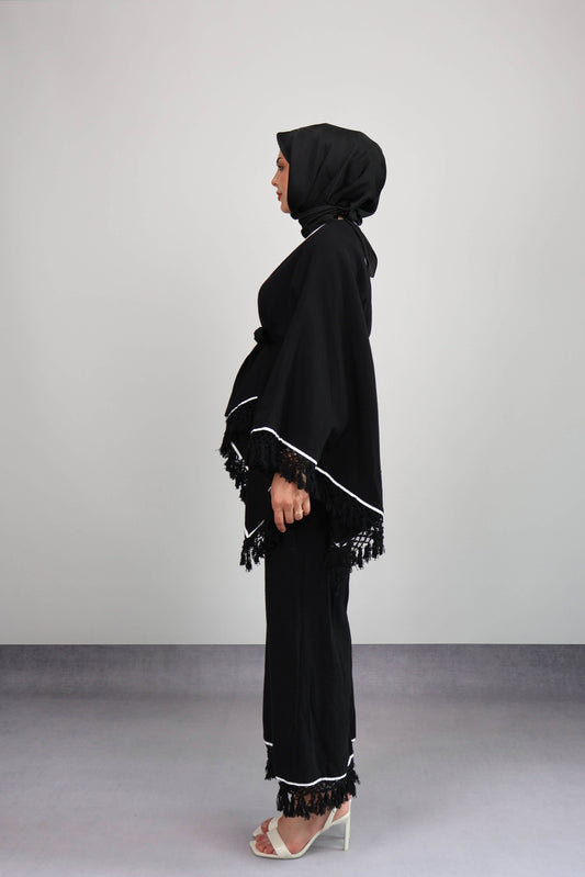 SİYAH PÜSKÜL DETAY PANTOLON TAKIM
