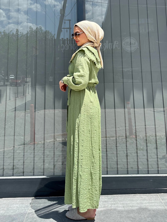 HAKİ YEŞİL BEBE YAKA FİSTOLU ELBİSE