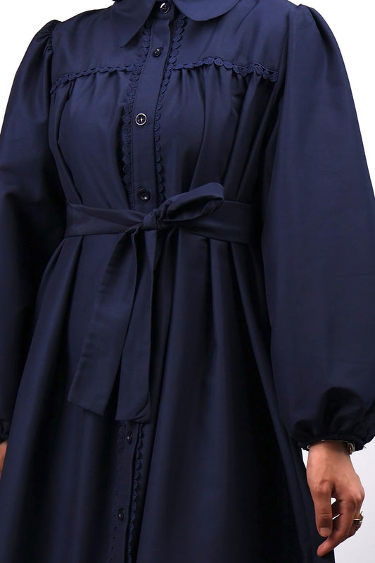 İndirimLACİVERT ÖNDEN DÜĞMELİ ELBİSE