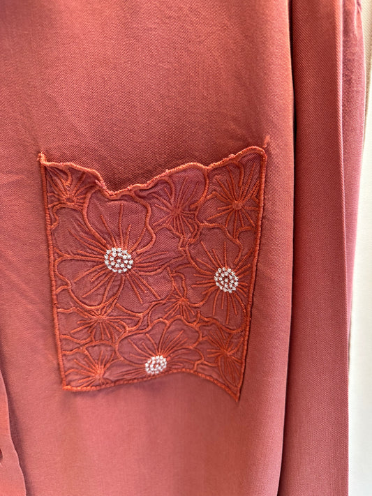 KİREMİT CEBİ NAKIŞ DETEYLI TENSEL GÖMLEK