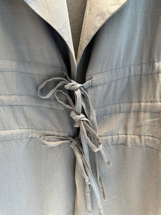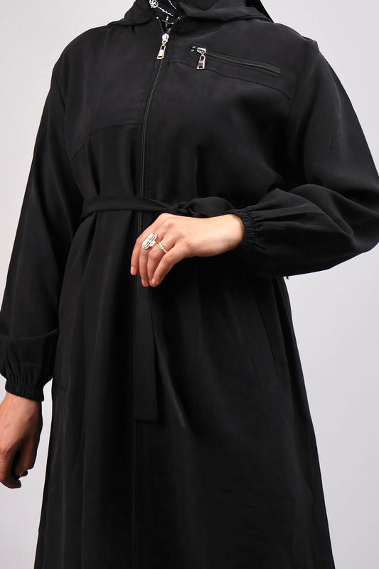 SİYAH LYOCELL KAPŞÖNLÜ ÖNDEN FERMUARLI TRENÇ