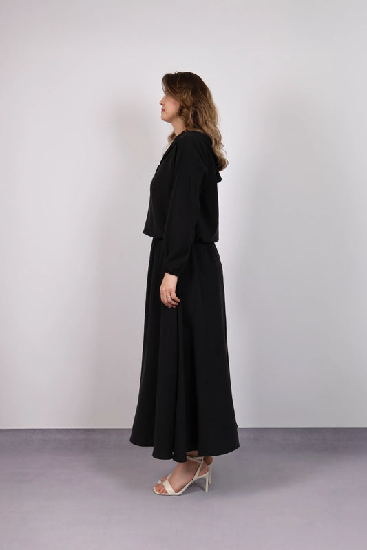 SİYAH LYOCELL KAPÜŞONLU ETEK TAKIM