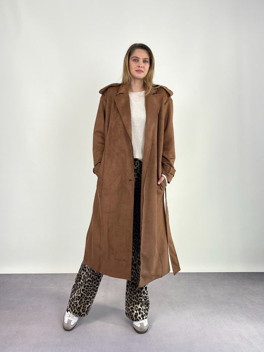 İndirimKAHVERENGİ SÜET UZUN CEKET
