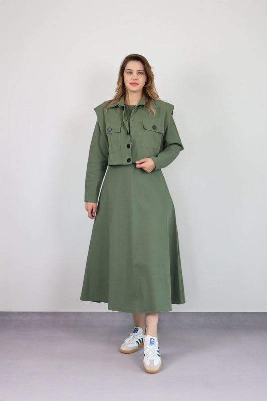 HAKİ YEŞİL YELEKLİ ELBİSE TAKIM