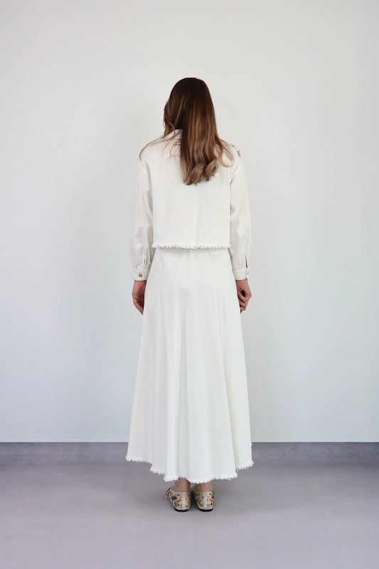 BEYAZ FIRFIR VE DÜĞME DETAYLI GÖMLEK