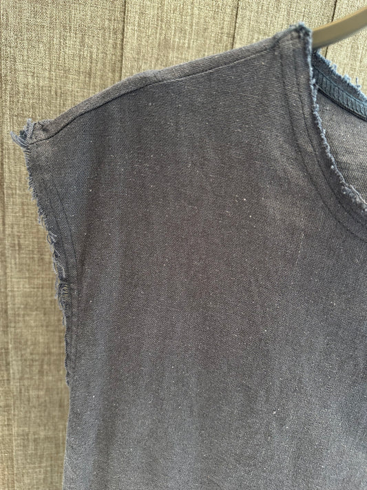İndirimLACİVERT KOLSUZ KETEN ELBİSE