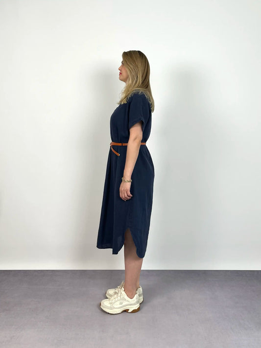 İndirimLACİVERT MİDİ BOY KETEN ELBİSE