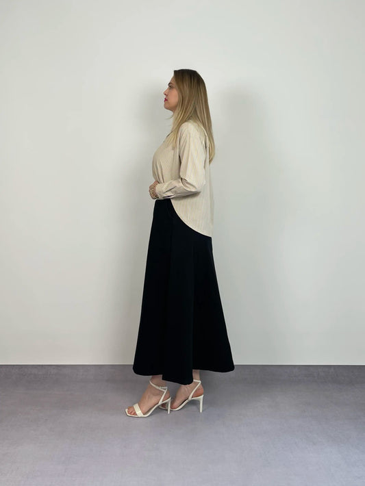 İndirimSİYAH BELİ KEMERLİ UZUN KOT ETEK