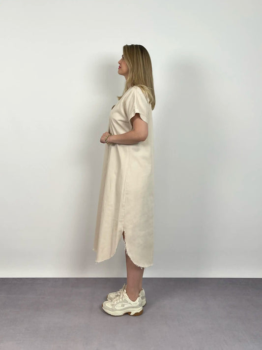 İndirimKREM MİDİ BOY GABARDİN ELBİSE