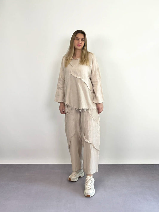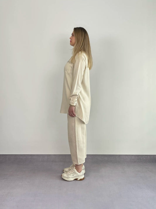 BEJ MÜSLİN PARÇA DETAY İKİLİ TAKIM