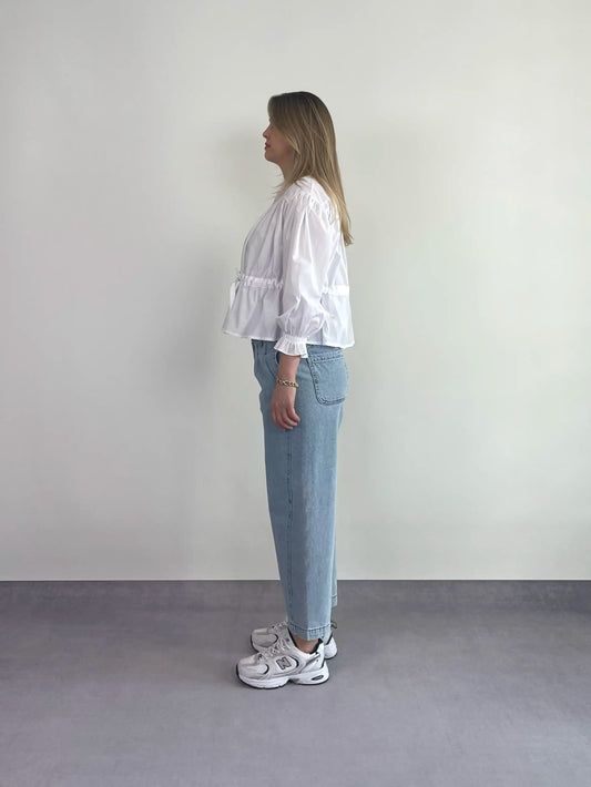 AÇIK DENIM RENKLİ TAŞ DETAY TENCEL GÖMLEK