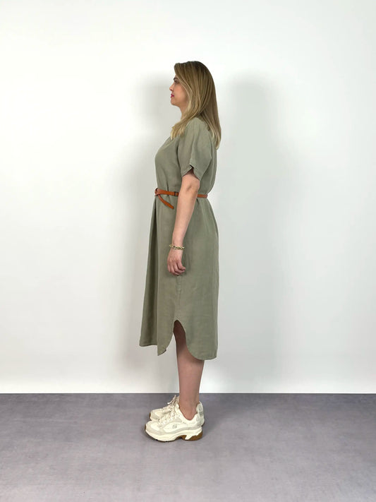 ÇAĞLA YEŞİL MİDİ BOY KETEN ELBİSE