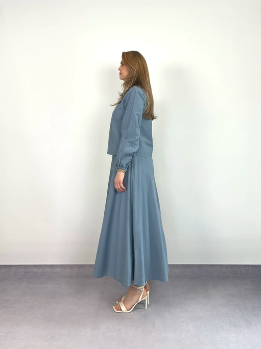 MAVİ GÜL DETAY PAMUK PARAŞÜT ETEK TAKIM