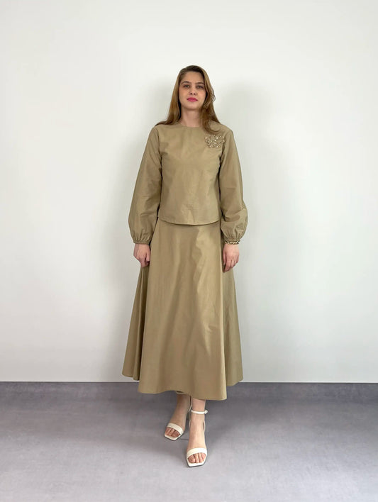 CAMEL GÜL DETAY PAMUK PARAŞÜT ETEK TAKIM