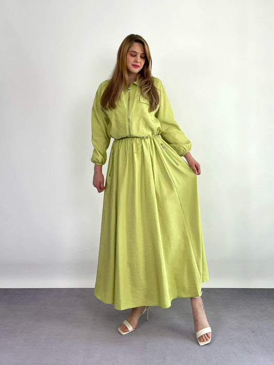 AÇIK YEŞİL BELİ BÜZGÜLÜ PAMUK PARAŞÜT ETEK TAKIM
