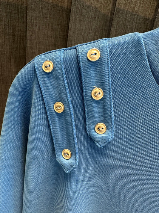 MAVİ OMUZLARI DÜĞME DETAYLI İKİLİ TAKIM