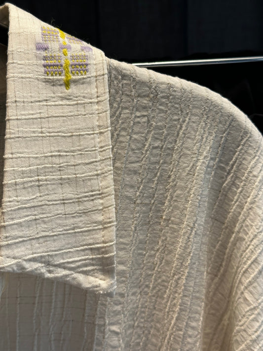 BEJ YEŞİL VE MOR RENKLİ SALAŞ KEMERLİ GÖMLEK