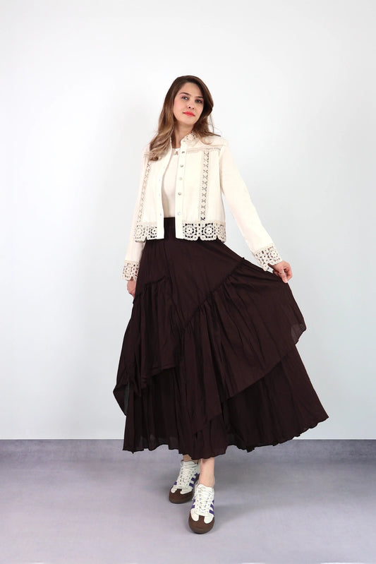KAHVERENGİ KRAŞLI KAT KAT ETEK