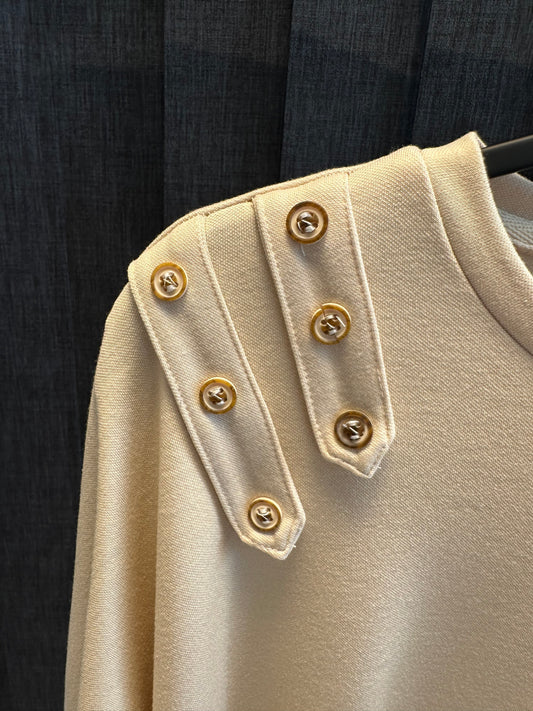 BEJ OMUZLARI DÜĞME DETAYLI İKİLİ TAKIM