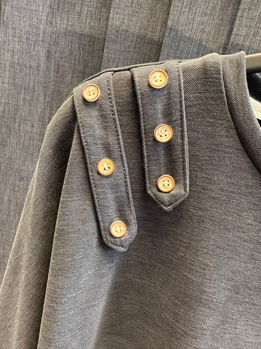 SİYAH OMUZLARI DÜĞME DETAYLI İKİLİ TAKIM