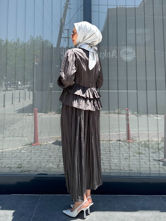 ANTRASİT BAĞCIK DETAYLI PİLİSELİ ETEK TAKIM