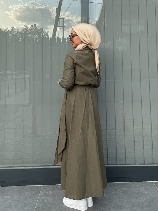 HAKİ ZIBINLI BEL DETAYLI ETEK TAKIM