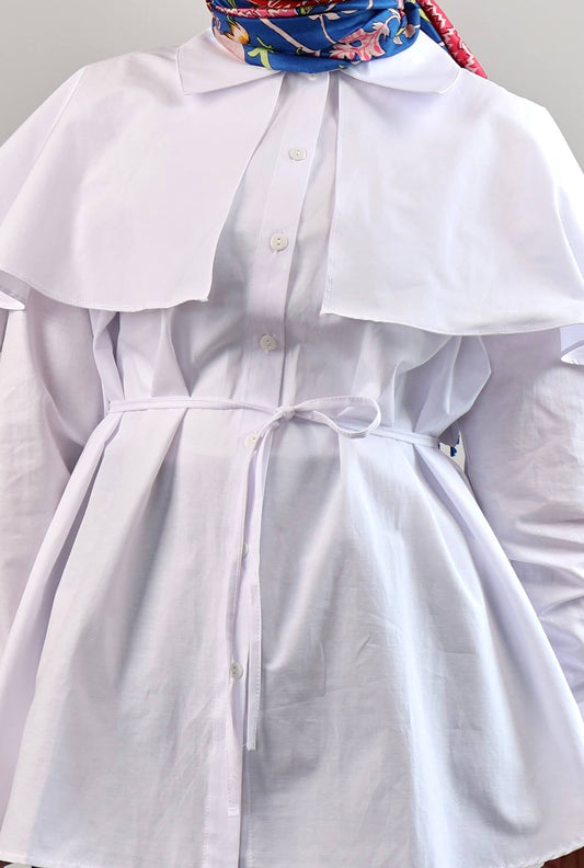 BEYAZ BELİ BAĞLAMALI VOLANLI TUNİK