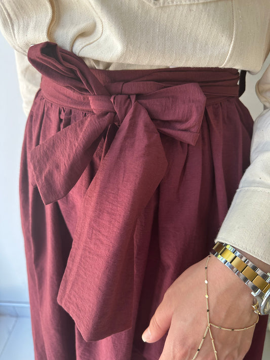BORDO D FORM KEMERLİ ETEK
