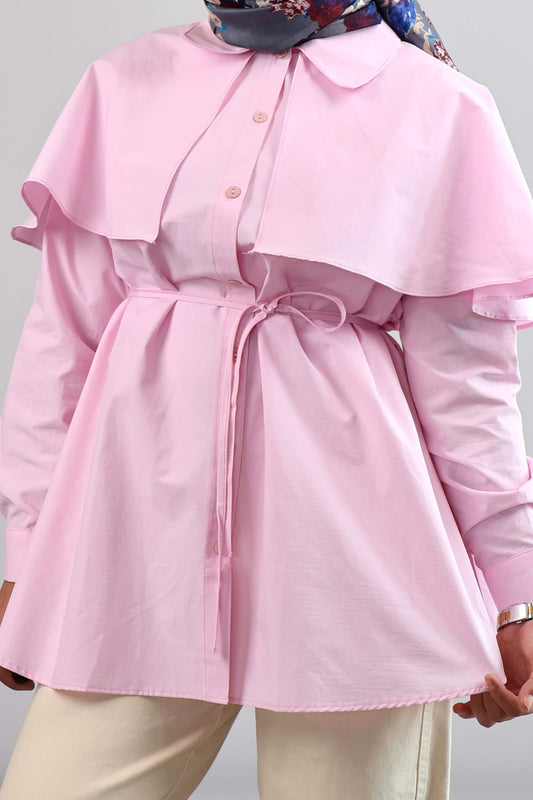 PEMBE BELİ BAĞLAMALI VOLANLI TUNİK