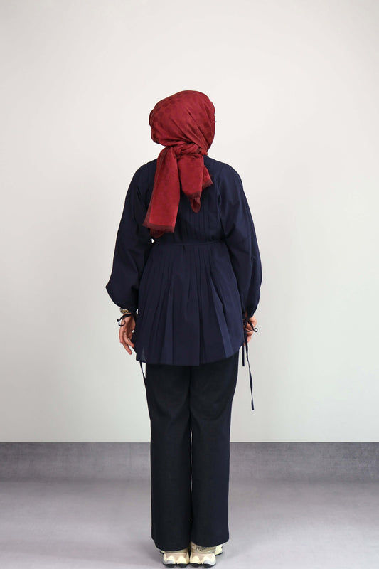 LACİVERT DİKİŞ DETAYLI BAĞLAMALI GÖMLEK