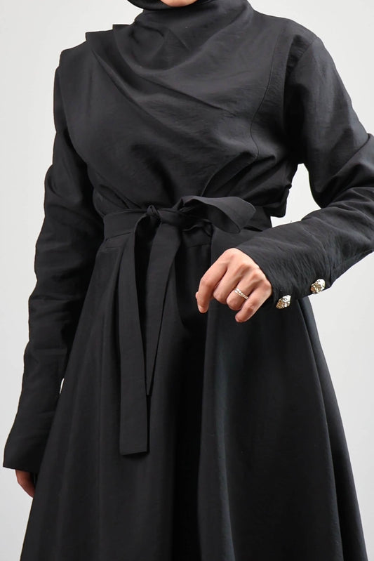 SİYAH BELİ BAĞLAMALI VOLANLI TUNİK