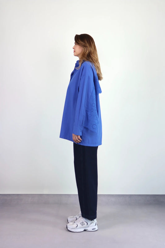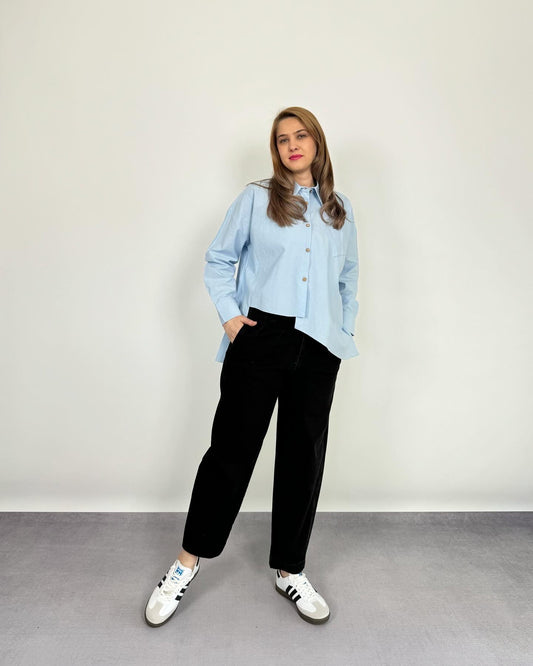 BEBE MAVİSİ AHŞAP DÜĞMELİ ASİMETRİK GÖMLEK