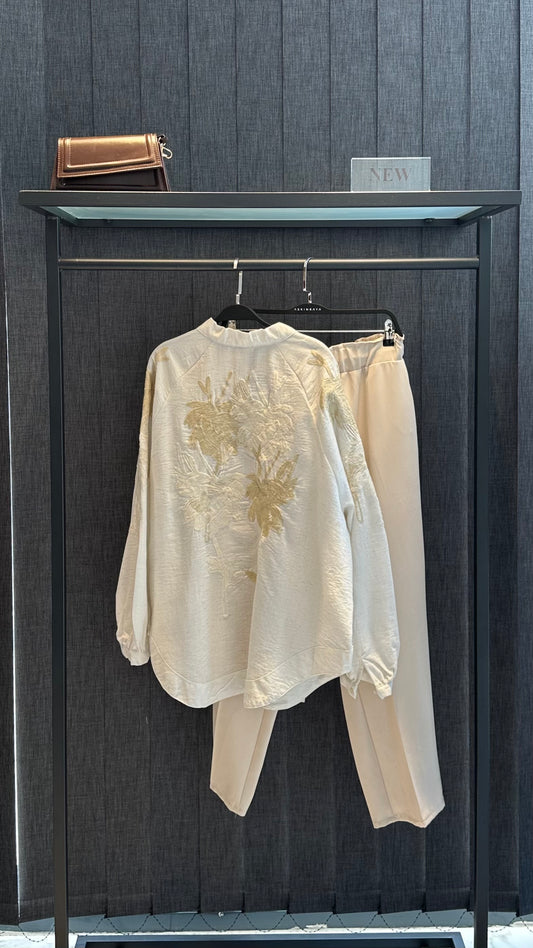 BEJ KAHVE NAKIŞ İŞLEMELİ GÖMLEK TAKIM