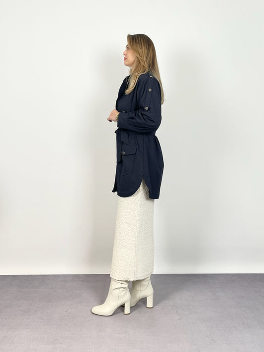 TükendiLACİVERT KEMERLİ KISA TRENÇKOT