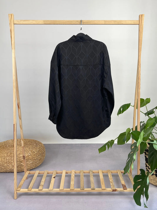 SİYAH YAPRAK DESEN JAKARLI GÖMLEK