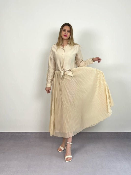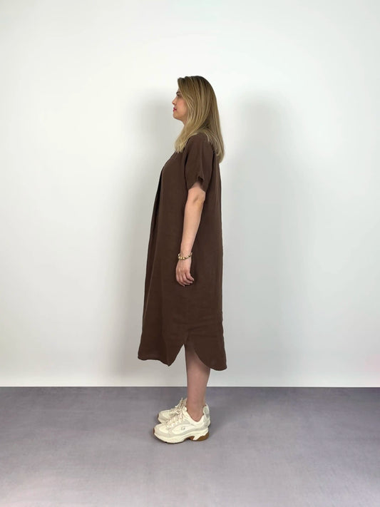 TükendiKAHVERENGİ MİDİ BOY KETEN ELBİSE