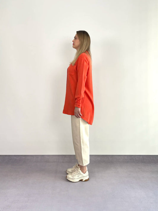 TURUNCU CEBİ TAŞ DETAY TENCEL TUNİK GÖMLEK
