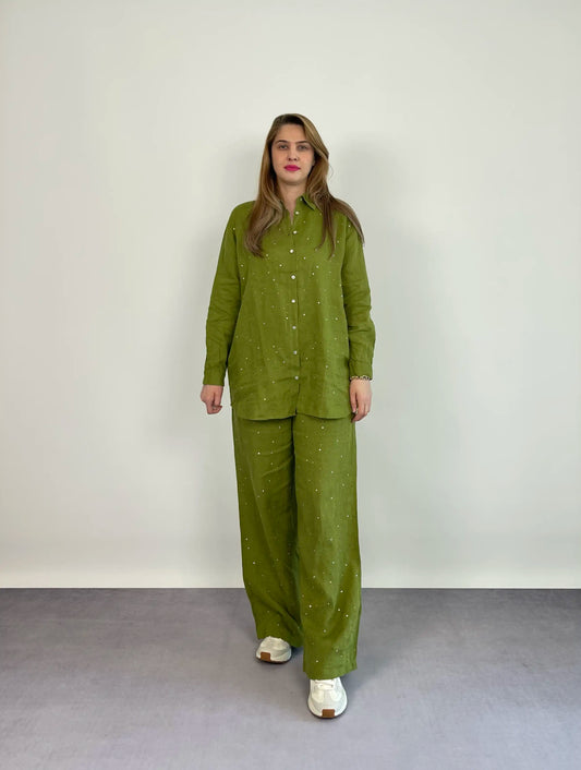 TükendiYEŞİL TAŞLI KETEN TAKIM