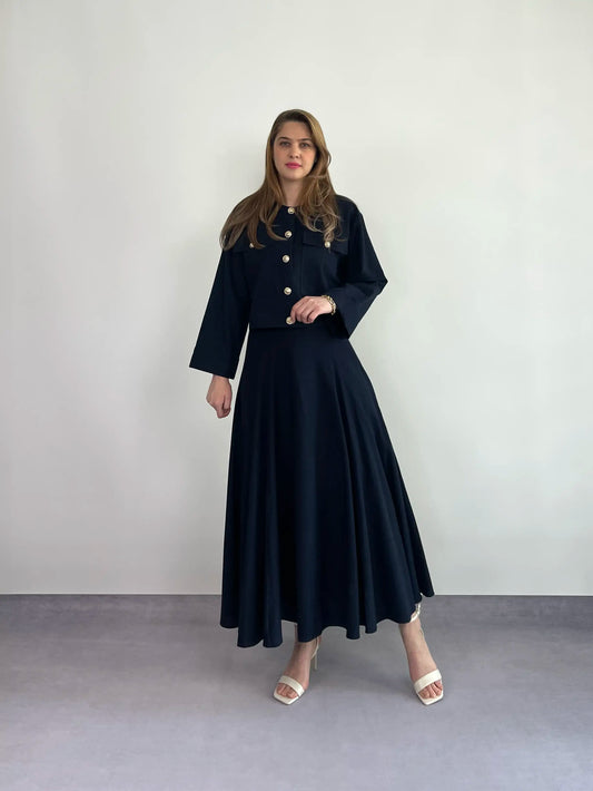 LACİVERT ROYAL KETEN CEKET ETEK TAKIM