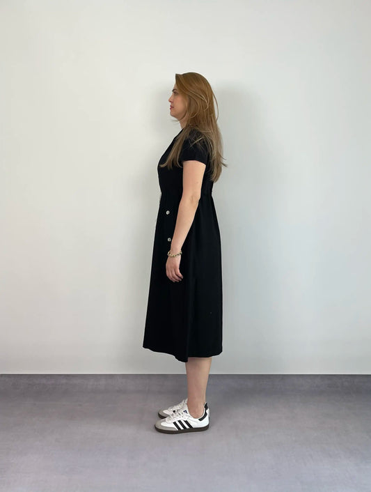 SİYAH KISA KOLLU PÜSKÜL KEMER DETAY ELBİSE