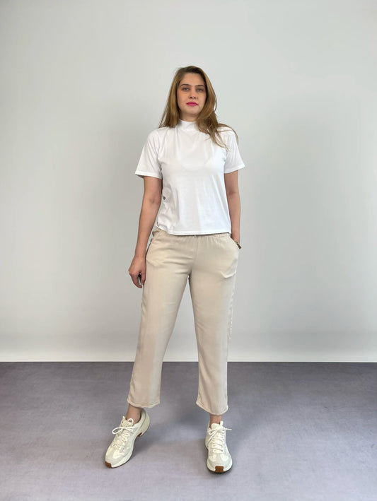 BEJ BELİ LASTİKLİ HAVUÇ FORM PANTOLON