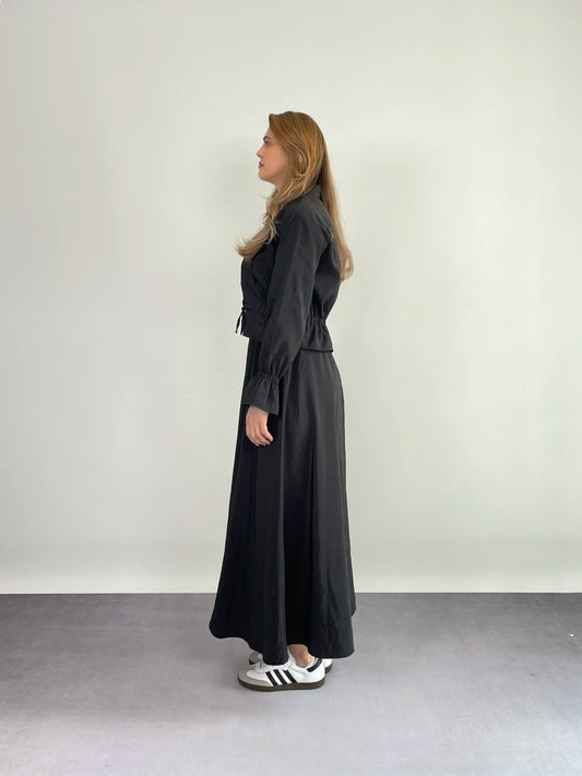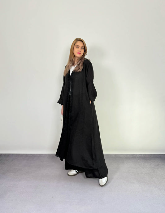 TükendiSİYAH UZUN KETEN KAFTAN TAKIM