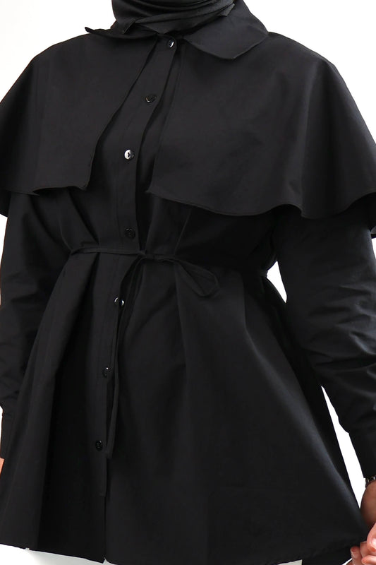 SİYAH BELİ BAĞLAMALI VOLANLI TUNİK