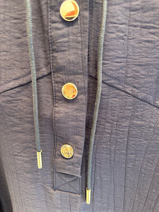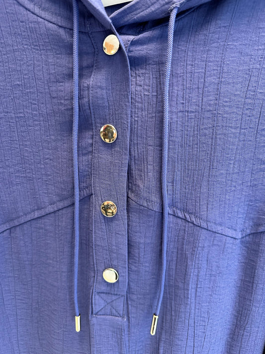 LACİVERT KESİK DETAY KAPİŞONLU TUNİK