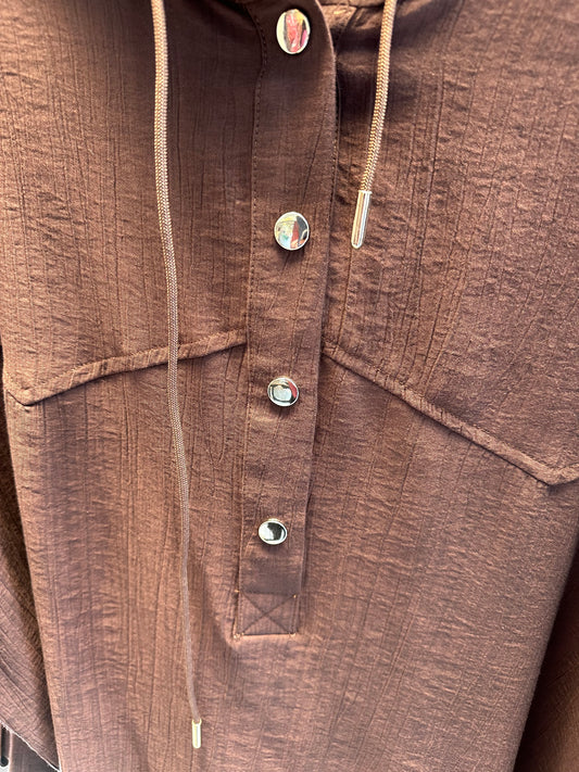 KAHVE KESİK DETAY KAPİŞONLU TUNİK