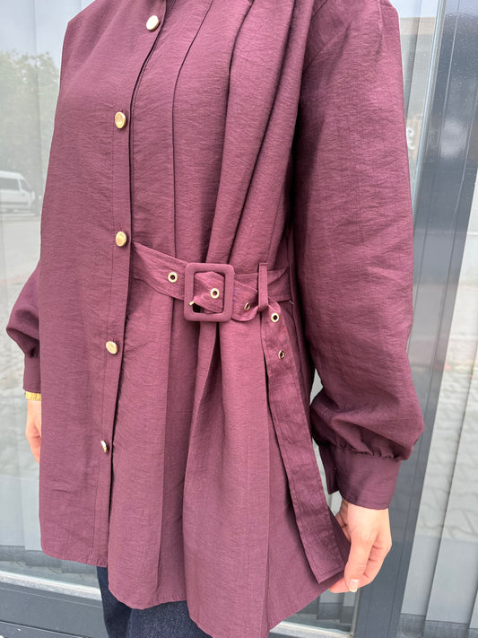 BORDO GOLD DÜĞMELİ KEMER DETAYLI TUNİK