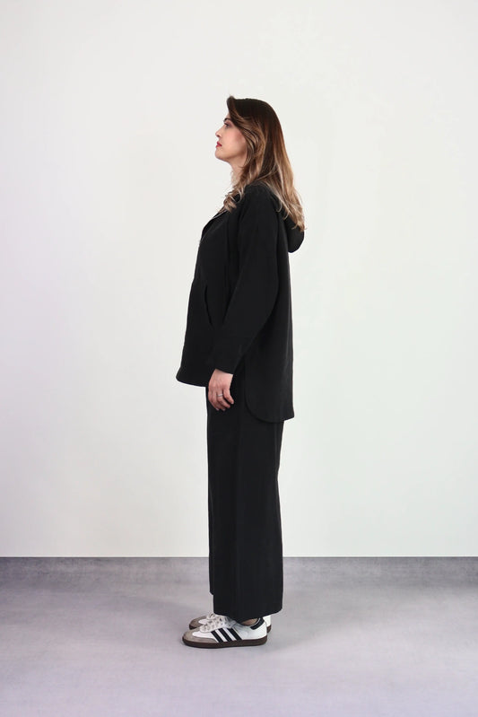 SİYAH LYOCELL KAPÜŞONLU PANTOLON TAKIM