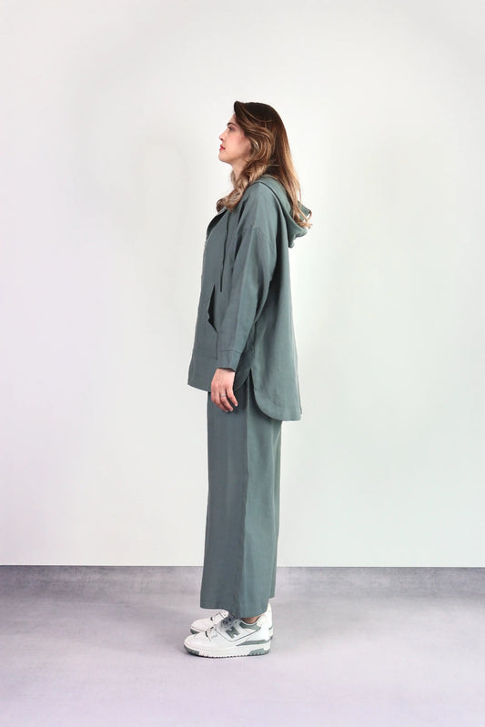 PETROL YEŞİLİ LYOCELL KAPÜŞONLU PANTOLON TAKIM